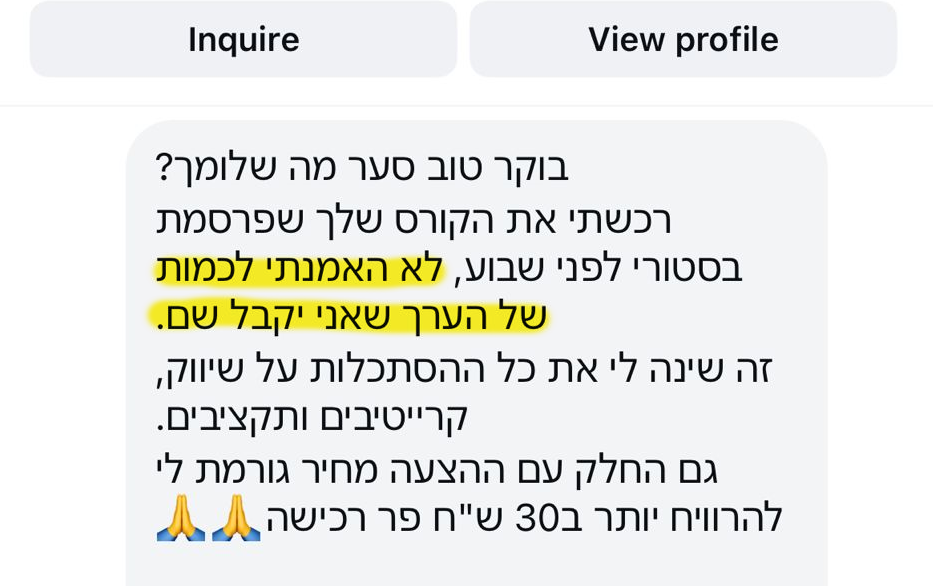 ועכשיו זיקקתי הכל לקורס אחד פרקטי שיחסוך לכם 10 שנים של טעויות בקורס מוקלט מלא בידע פרקטי טהור.