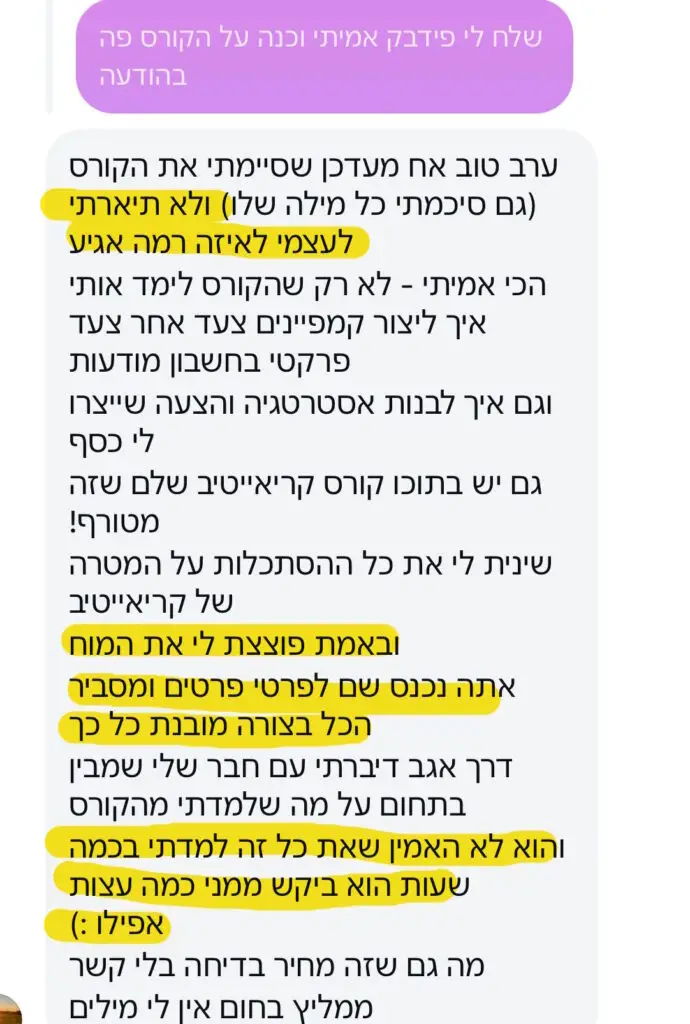 אני באמת רוצה שתפיקו את המיטב מהקורס הזה, שתוכלו באמת להקים קמפיינים מצליחים ולראות תוצאות,